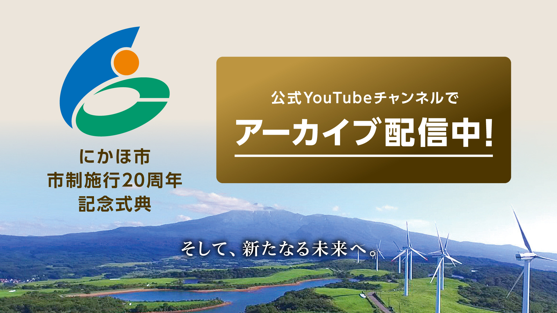 その節目を祝うため、令和7年10月1日に開催された「にかほ市市制施行20周年記念式典」の様子を、にかほ市公式YouTubeで配信しますので、ぜひご覧ください。
